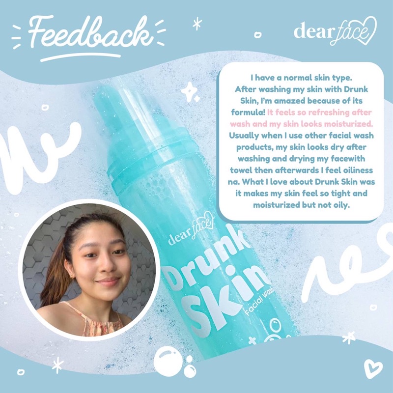 Dear Face Drunk Skin Facial Foam Wash ingredients explained. Drunk Skin Facial Wash Supra Glow Serum Daily Sunblock. Dear Face Drunk Skin Facial 700 USD Quantity Add to cart TIKTOK Trending Drunk Skin Facial Wash 100ml 13yrs old and above 12 yrs old every other day Pregnant Lactating moms All.
